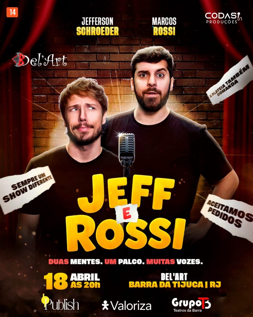 Queremos dizer: JEFF E ROSSI estão chegando com suas histórias e vozes nesse espetáculo onde cada um conta um pouco da sua história e com participação direta da plateia.